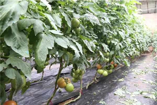 李师傅的西红柿于8月1日定植,8月底棚内西侧也出现返水情况,在冲施江南网页版2次后,不仅植株健壮,而且开花坐果膨果情况非常好,明显的改变就是,之前第4、第5穗果经常会出现空穗状况,而今年没有这些问题,基本每穗都坐果4-5个,而且果个大小均匀,膨果快,李师傅的西红柿共留6穗果,已经打头,第 一穗果实已经陆续开始采摘!