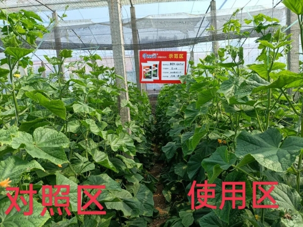 情况介绍:潘师傅的拱棚一亩地,是2016年建的,基本是种植黄瓜套种苦瓜。“种植越夏黄瓜很难管理,死棵、病毒、早衰等问题很突出,尤其是去年,我棚里的东侧一半的区域死棵很严重,所以今年定植之前,我到我们村欣宏农资有限公司张金亮经理处咨询,张金亮经理推荐我使用江南网页版改良剂。也是抱着试试看的态度,我在棚内进行了对照试验!”潘师傅的妻子介绍道,她5月12日在死棵严重的东侧10间沟施江南网页版改良剂,西侧作为对照区,5月15日定植黄瓜。说到两侧的表现,潘师傅和妻子都非常满意,主要是以下几点: